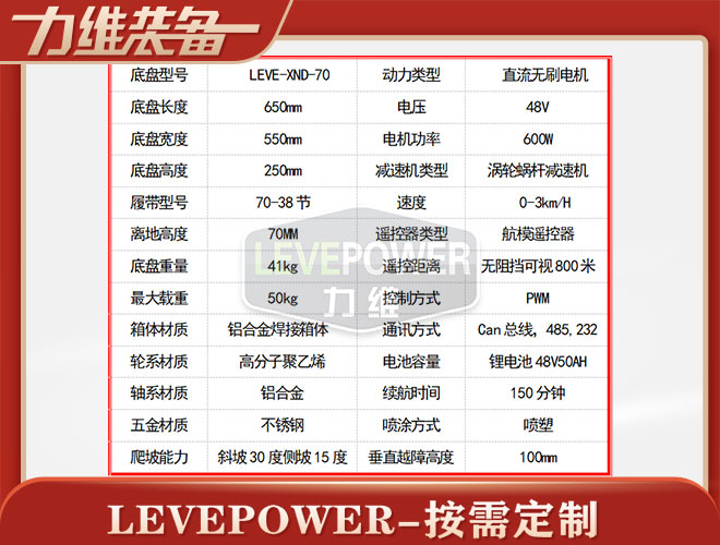 LEVE-XND-70特種橡膠履帶底盤采用天橡膠內(nèi)加凱夫拉纖維經(jīng)過高溫硫化擠壓成型,材質(zhì)輕、耐磨性能強,是一款不錯機器人橡膠履帶。